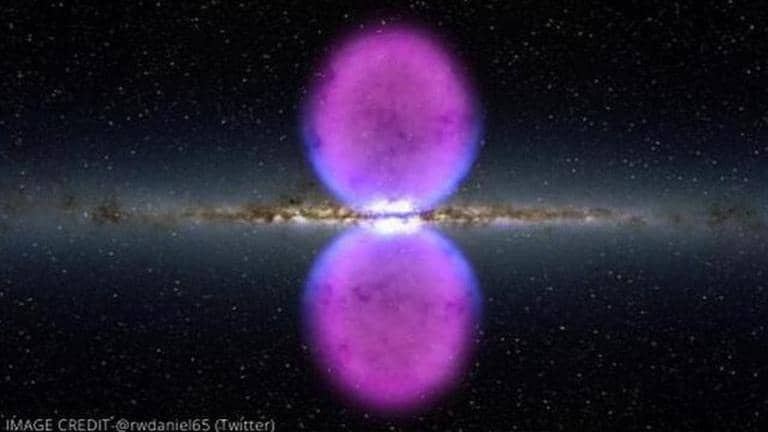 Fermi Bubbles: There are Two massive bubbles of Gamma radiation emitted from the center of our Galaxy, Called Fermi Bubbles. Many have tried to explain their mysterious existence, But the Truth is, No one really knows why they are there,https://t.co/UcZuJhzUFc pic.twitter.com/zghQPWFORb