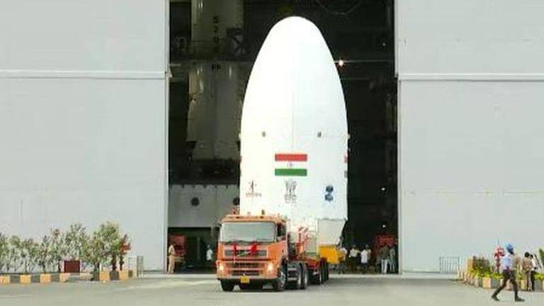Chandrayaan-3 encased into LVM3 rocket's fairing being moved for assembly with the launch vehicle at Satish Dhawan Space Center. (Image: ISRO) | Image: self