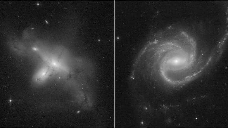 NASA released Hubble's images of a pair of interacting galaxies in the southern hemisphere, named ARP-MADORE2115-273 (left) and ARP-MADORE0002-503 (right).