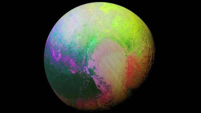 The National Aeronautics and Space Administration NASA on Tuesday shared a stunning chromatic picture of Pluto splashed with a dash of colours. The mind-blowing speck of green, blue, yellow, and red differentiated the widely varied rugged terrain on the dwarf planet. "Pluto is shown in a rainbow of colours that distinguish the different regions on the planet. The left side of the planet is mostly blue-green with purple swirls, while the right side ranges from a vibrant yellow-green at the top to a reddish-orange toward the bottom,” NASA explained.