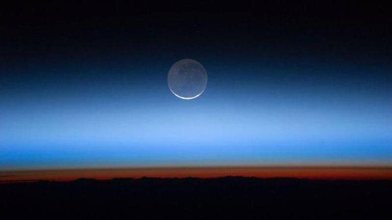 NASA has shared a spectacular image of a crescent Moon that was captured from the International Space Station rising above the Indian Ocean.