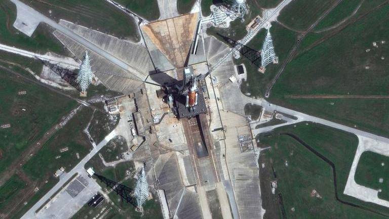 NASA's Artemis I rocket was photographed at the Launch Complex 39B at the Kennedy Space Center by a satellite of Maxar Technologies.