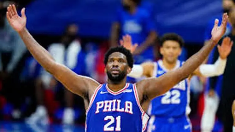With the 76ers clinging to a 107-103 lead, Embiid blocked LaVine’s driving attempt with 1:02 remaining, then hit a 17-foot baseline jumper with 41 seconds left. When the Bulls called timeout, Embiid jogged to center court and put both hands up as if requesting cheers from the empty seats while the speakers played artificial “M-V-P!” “M-V-P!” chants.