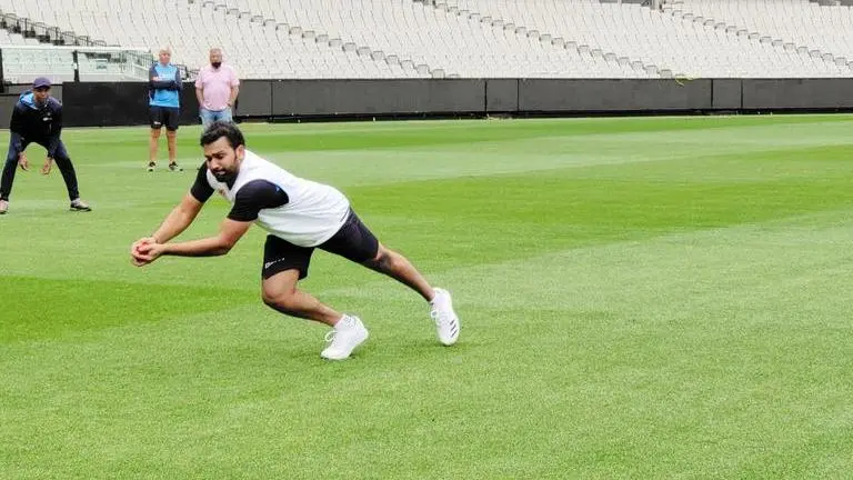 The 33-year-old Mumbaikar, who had missed the limited-overs series as well as the first two Tests against Australia due to a hamstring injury that he sustained during the IPL, was seen taking catching practice in the photographs.