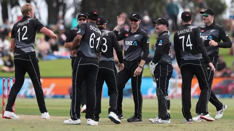 New Zealand: Tim Seifert, Martin Guptill, Glenn Phillips, Devon Conway, Ross Taylor, James Neesham, Mitchell Santner, Tim Southee (captain), Kyle Jamieson, Lockie Ferguson, Ish Sodhi.