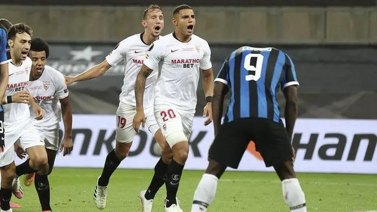 The Inter forward deflected Diego Carlos' overhead kick into his own net for Sevilla’s winning goal in the 74th minute, after a game-long duel with the Brazilian defender. Diego Carlos had fouled Lukaku in the third minute, conceding a penalty for the third game in a row, and was perhaps fortunate to avoid a red card.