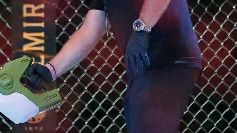The cage floor was disinfected between bouts, and the padded parts of the octagon were wiped down between rounds.