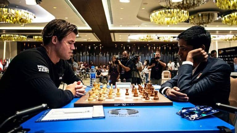 R Praggnanandhaa with playing Magnus Carlsen (Image: FIDE/X) | Image: self