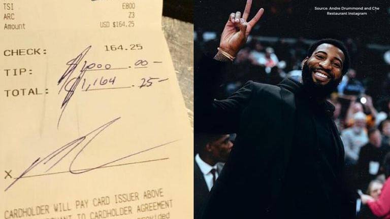 Cleveland Cavaliers star Andre Drummond recently tipped a server $1,000 for a $164.25 bill. The waitress took to the restaurant's official account to talk thank the Cavs star and even posted a photo of the bill. Drummond also commented on the post, thanking the server and the restaurant for being 'amazing'.