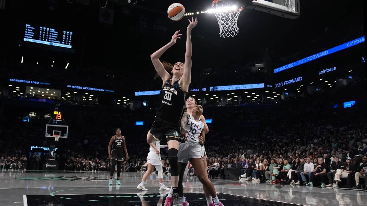 The Lynx got within 57-53 near the end of the third quarter before Stewart hit two free throws, had a massive block on the other end and then capped it off making a jumper from the quarter to give New York a 61-53 advantage heading to the fourth.