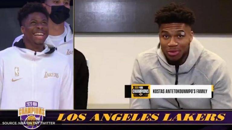 The Los Angeles Lakers celebrated their last year's NBA championship win after the players and staff were awarded their rings on Tuesday. While the Staples Center crowd weren't there to witness the celebrations amidst the coronavirus pandemic, it was nonetheless a wholesome event with family members joining the ceremony through video conference. So when it was Kostas Antetokounmpo's turn to receive his ring, brothers Giannis and Thansis joined the Lakers ring ceremony 2020.