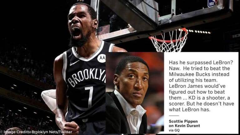 Kevin Durant is largely regarded as one of the best scorers in the league. He once again proved it in the NBA Playoffs 2021, where he averaged 34.3 PPG, which included a historic 49-point triple-double in Game 5 against the Bucks. But KD’s efforts did not help the Nets cross the line as they failed to win Game 7, which resulted in their season getting cut short. As brilliant as Kevin Durant has been in this series, the second-round exit has called for some attention and Scottie Pippen had his say on this, where he came out and said that KD had more to learn to reach LeBron's level.