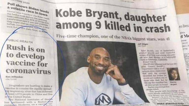 Kobe Bryant newspaper article published on same day as coronavirus vaccine story?