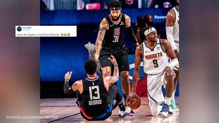 LA Lakers fan Ice Cube took to Twitter to mock rivals LA Clippers after their monumental collapse against the Denver Nuggets in the NBA playoffs.