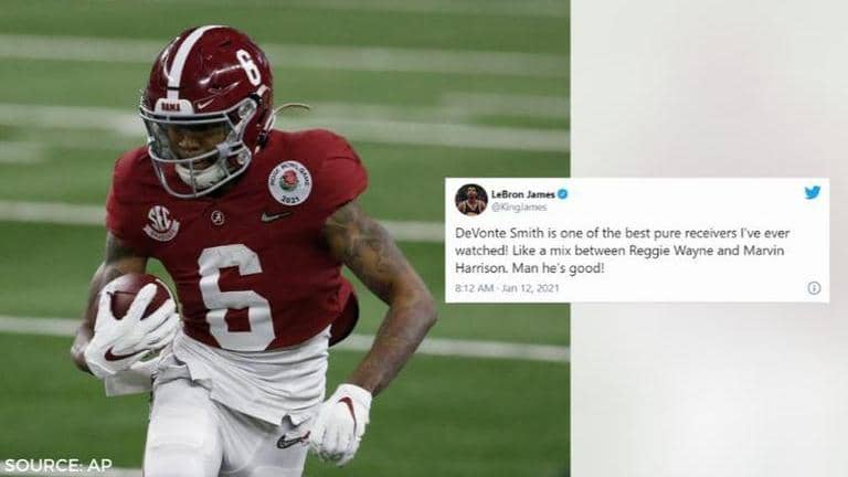 After Alabama's DeVonta Smith's incredible half-time performance against Ohio State, NBA icon LeBron James chose to praise the 22-year-old on Twitter.