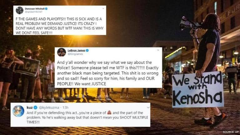 While Mitchell and Kuzma tweeted their views, Paul spoke about the incident after the OKC Thunder evened their playoff first-round series against the Houston Rockets. Milwaukee Bucks' George Hill also spoke about the issue after the Bucks' win against Orlando Magic, questioning their season at the NBA bubble amid all the unrest in the USA. The Milwaukee Bucks later issued a statement about the incident. Several NFL stars like Kenny Stills, Michael Thomas and Cameron Jordan voiced outrage at Blake's shooting.