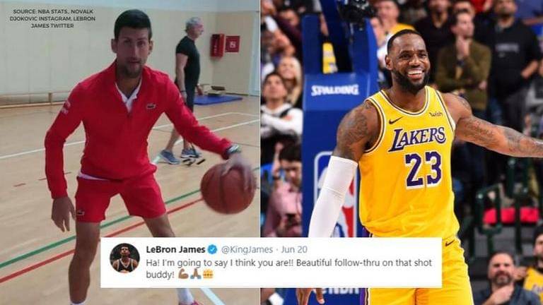 Los Angeles Lakers star LeBron James and Novak Djokovic interacted on Twitter, where James responded to video of Djokovic shooting a 15-foot follow-thru jumper.