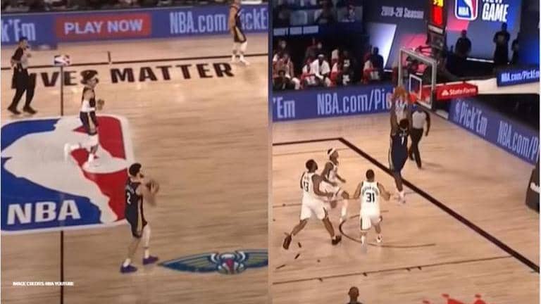 NBA is back after a four-month hiatus and it took less than 30 minutes for New Orleans Pelicans' Zion Williamson to dazzle on the court. While Williamson did not get enough minutes as fans would have liked, the No.1 overall pick of 2019 draft had enough time to shine for the resurgent Pelicans. One moment of brilliance was in the second quarter when the 20-year-old combined with Lonzo Ball for a perfect, long-range alley-oop.