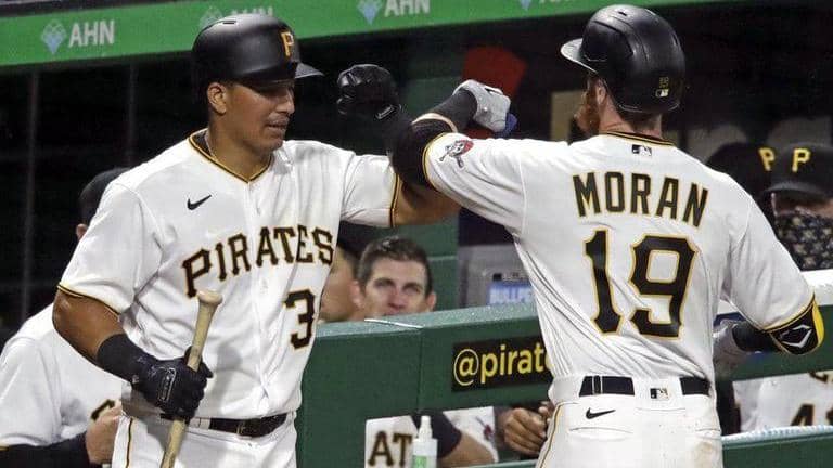 Moran sent a liner to the seats in right field in the second immediately after a 1 hour, 42-minute rain delay. He put the Pirates ahead in the seventh with a long drive over the right-field stands off reliever Devin Williams.