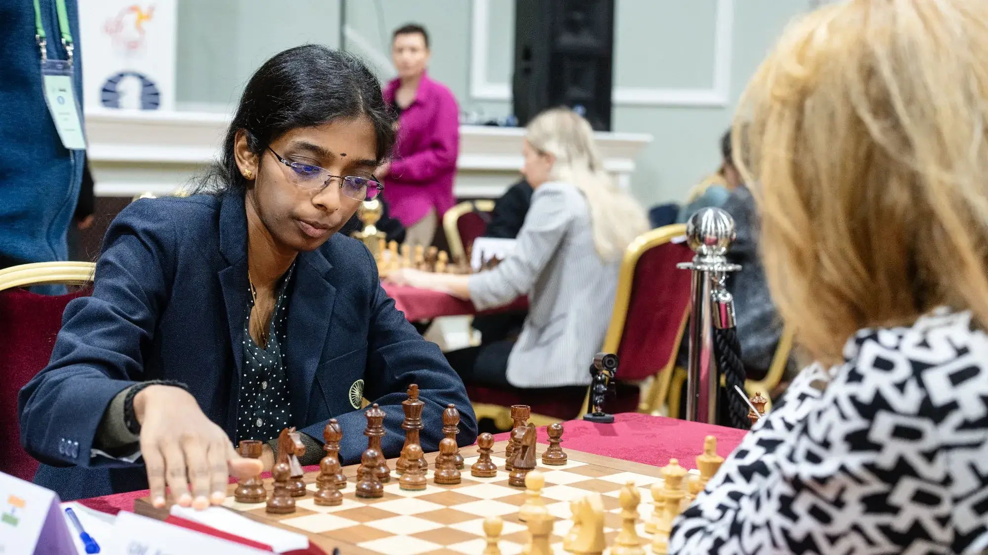Vaishali crushes Stefanova to take sole lead | Image: ChessbaseIndia/X
