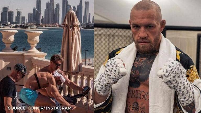 Taking to Instagram, The Notorious One shared a picture of himself training with his teammates as the Persian Gulf sun blasted down. McGregor, who looked mean and lean as he pumped away on the bike, impressed many with his shredded physique. He was wearing a blue short, accompanied by a white bandana. “Go again, go harder,” McGregor captioned the image.