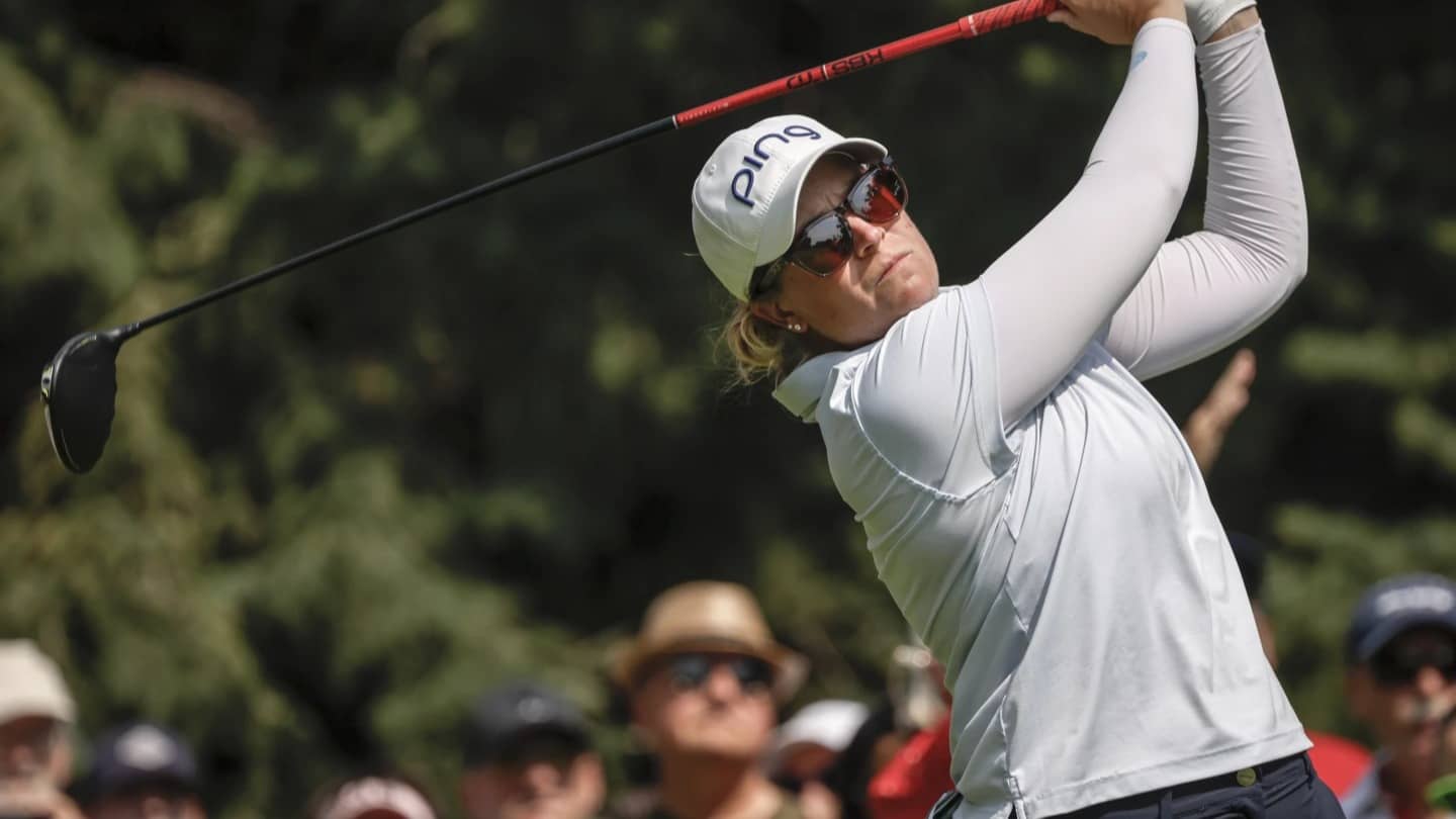 Charley Hull of England narrowly missed a long eagle putt on the par-5 18th. Her tap-in birdie gave her a 69 that left her three shot out of the lead, along with Olympic silver medalist Esther Henseleit of Germany, who had a 66.