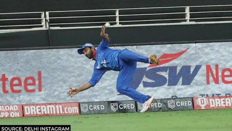Ajinkya Rahane once again proved that he is an indispensable part of the Delhi outfit. During the first ball of the 20th over with Rajasthan needing 21 runs, Rahul Tewatia smashed one over long-off and the ball was almost going the distance. However, it was an alert Ajinkya Rahane at the long-off boundary, who backtracked the ball to perfection and nearly caught it. Ajinkya Rahane soon realised that he was going over the ropes as he chucked the ball back inside the field just in time. It resulted in Rahane saving 5 crucial runs for Delhi, which eventually proved to make a difference in the team's 13-run win.