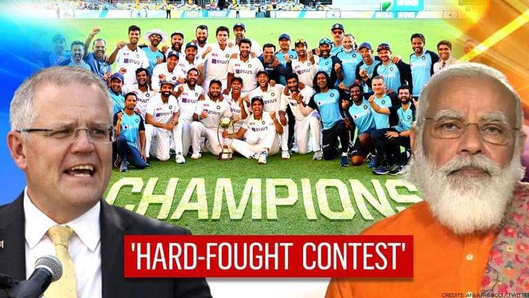 Australia's PM Scott Morrison congratulated India for their historic 2-1 series win in the Border-Gavaskar Trophy on Tuesday and extended his wishes to PM Modi
