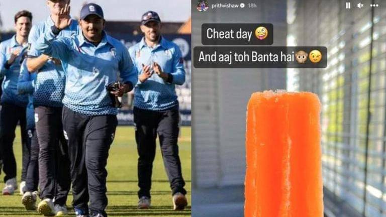 The explosive batsman wreaked havoc with his incredible batting display, hitting 28 fours and 11 sixes in all during his time on the crease. After this breathtaking display of talent, Prithvi Shaw treated himself to a day off from his diet as a reward. The following Thursday, he posted a story on his account on Instagram, including an ice sweet. The gifted young cricketer joked about having a "cheat day" after his magnificent double century.