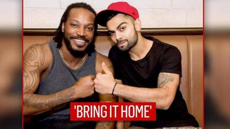 Taking to the micro-blogging site, the 'Universe Boss' wished Virat by calling him a 'legend' and then urged the top-ranked ODI batsman to bring the cup home for Bangalore this time around.