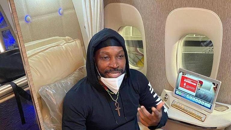 Chris Gayle took to Instagram, where on his official account, he posted his pictures from the flight to Dubai, in which he was seen having a gala time.