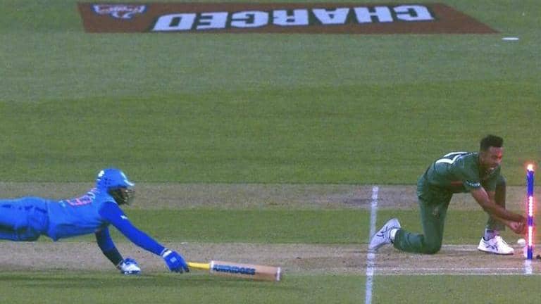 India vs Bangladesh: Dinesh Karthik was declared run out as replays showed the ball hitting the stumps at the same time Shoriful's hands broke the bails.