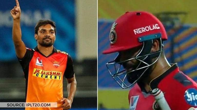 Bangalore lost in-form opener Devdutt Padikkal in just the third over of the innings. His dismissal elicited an early arrival of their skipper and prolific run-getter Virat Kohli at the crease. While it was Hyderabad pacer Sandeep Sharma who cleaned up Padikkal with an in-swinging beauty, he also accounted for the wicket of IPL legend Kohli in his very next over.