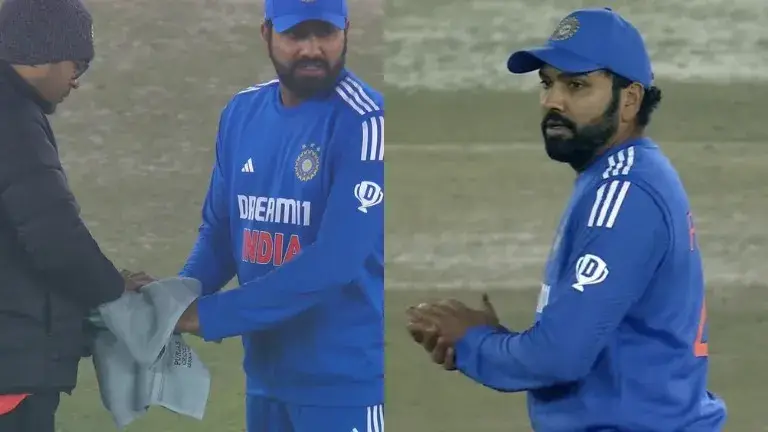 Rohit Sharma was seen warming his hands with a towel and a hot water bag in the middle of the ground. The video capturing this moment has gone viral on various social media platforms.
