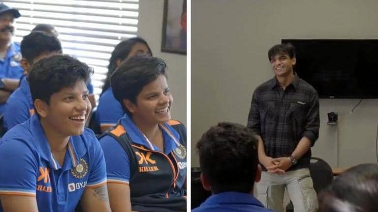 Olympic gold medallist Neeraj Chopra spent time with the India U-19 women's team ahead of the India W vs England W, ICC U-19 Women’s T20 World Cup 2023 final.