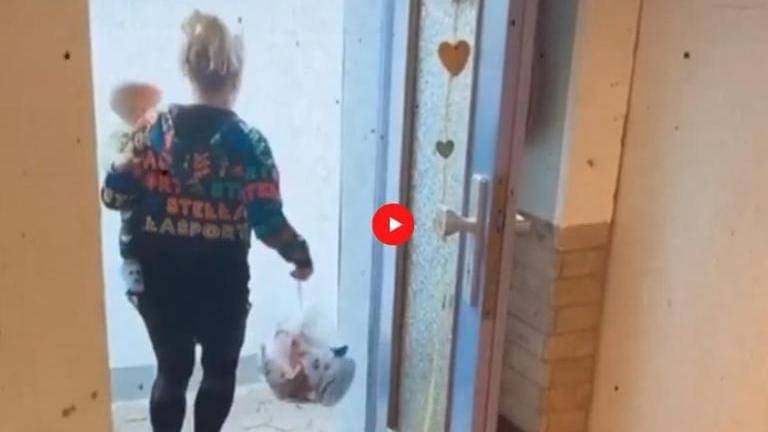 In the short video, a mother can be seen going out of the door to throw the garbage. The woman has a garbage bag on one hand while holding her baby in the other. A few moments later, when she comes back she still has garbage bag in her hand but the child is missing. It takes her a while to realize what she has done when she dumps the bag on the door and makes a run for the kid.
