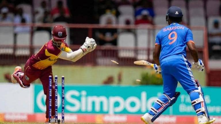 Sanju Samson stumped by Nicholas Pooran during IND vs WI 2nd T20I (Image: AP) | Image: self