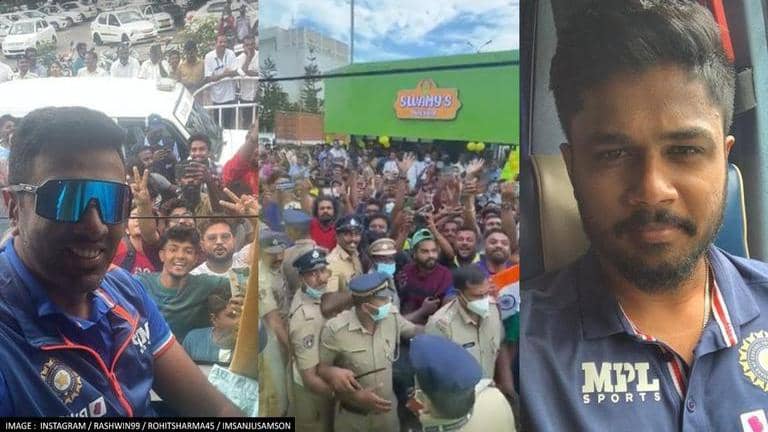 Sanju Samson was not picked for the T20I series against South Africa as a result of which he did not travel with Team India..The wicket-keeper batsman was also snubbed by selectors for the T20 World Cup opting for Dinesh Karthik and Rishabh Pant for the series. However, despite the absence, Samson is still a crowd puller in his home state of Kerala. Team India Spinners Yuzvendra Chahal and Ravichandran Ashwin shared a video of their huge reception in their Instagram story, mentioning Sanju Samson's name.