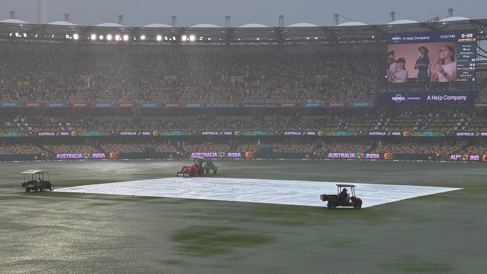 India vs Australia 3rd Test: Tea Break Extended as Persistent Rain Washes Out Play at the Gabba