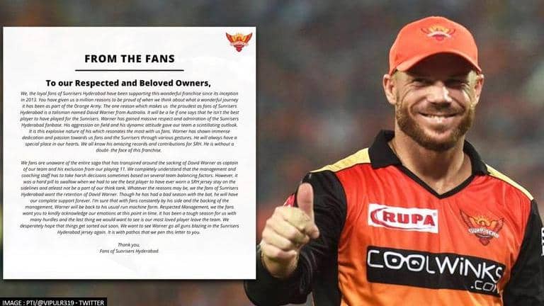 IPL 2021: Sunrisers Hyderabad fans pen open letter to management on Warner's ouster