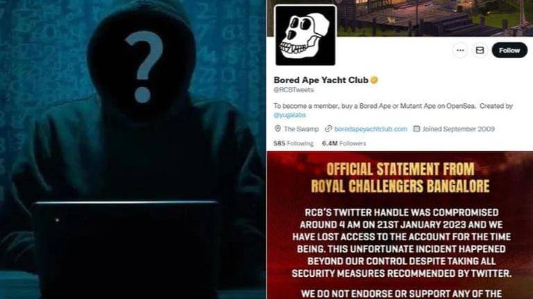 The Indian Premier League (IPL) franchise Royal Challengers Bangalore's (RCB) official Twitter handle was allegedly hacked by crypto scammers on Saturday. The hackers changed the name of the account to 'Bored Ape Yacht Club' and started posting NFT-related tweets on the Bengaluru-based franchise's timeline. They also changed the display picture of the account and inserted a link that took users to a website associated with the hackers.