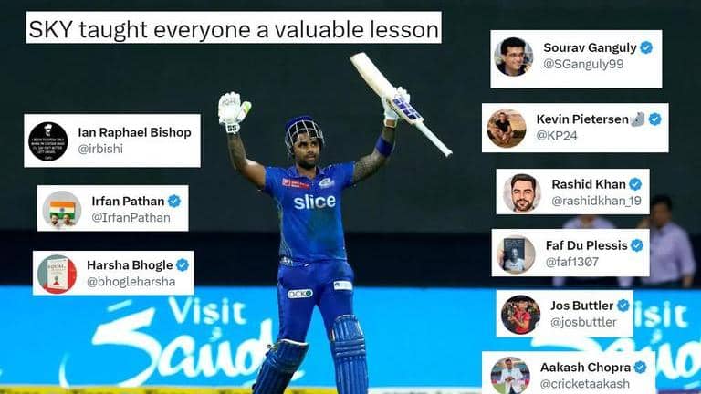 The cricket world has hailed Mumbai Indians batsman Suryakumar Yadav for his matchwinning innings in the MI vs RCB IPL 2023 match at the Wankhede Stadium.