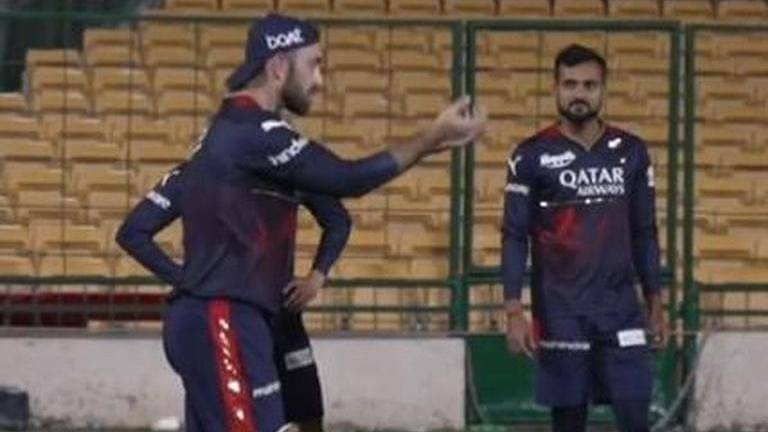 Ahead of the RCB vs MI match, Bangalore batsman Glenn Maxwell amidst being doubtful to play was seen giving catch practice to RCB players in Bengaluru.