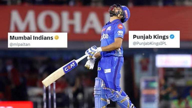 On Wednesday, Mumbai Indians and Punjab Kings squared off in a high-scoring encounter. PBKS were buoyed after putting 214 on board and left MI in a state of bother after removing Rohit Sharma at the score of not. Following Sharma's dismissal, MI's social media team came up with a witty dig targetting Rohit and MI. The contemporary Twitter handle however posted a befitting reply.