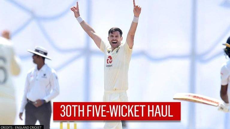 30th Test fifer on Saturday in the second Test against Sri Lanka. With the Lankans toiling English bowlers, Anderson powered in spell after spell knocking off key batsmen and helping his side limit the hosts for 381 in the first innings. Anderson bowled 29 overs, out of which, 13 were maiden and picked six wickets in all while conceding only 40 runs.