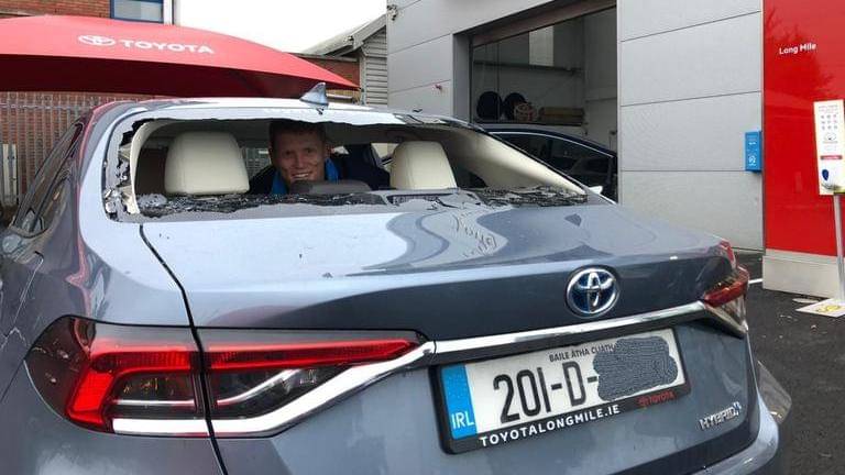 The 36-year-old was astonished as one of his eight towering sixes landed in the parking lot next to the stadium and ironically broke the rear-window of Kevin O'Brien's own car. The cricketer had to take his car to the Toyota service station right after the match. Interestingly, Kevin O'Brien is the brand ambassador for Toyota in Ireland. He also added in his tweet that he would consider parking his car a little further away next game onwards.