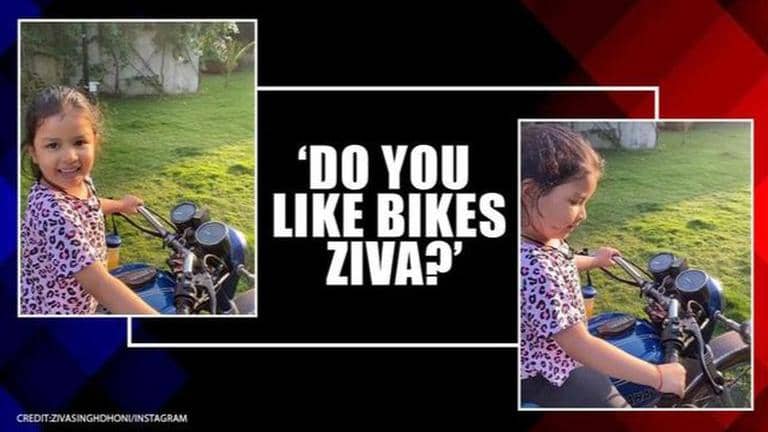This time, the video shows Ziva accelerating the bike and enjoying the sound effects while in the background mother Sakshi Dhoni is cheering her. At one point, Sakshi asks Ziva who is seen on a blue Yamaha bike, 'Do you like bikes', and she promptly answers, 'Yes' and the two set out for a ride.