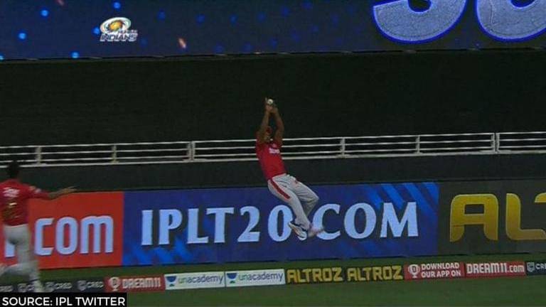 Mumbai had scored nine runs off the first five balls off Chris Jordan off the second Super Over. On the final ball, Kieron Pollard whipped the delivery towards deep mid-wicket and it seemed likely that the ball would go for a maximum. However, a stunning effort by Mayank Agarwal at the boundary denied Mumbai six runs. Mayank Agarwal took a massive leap and caught the ball but quickly realized he was crossing the boundary rope. He ended up throwing the ball back onto the field and saved four crucial runs for his side as they restricted Mumbai to 11.