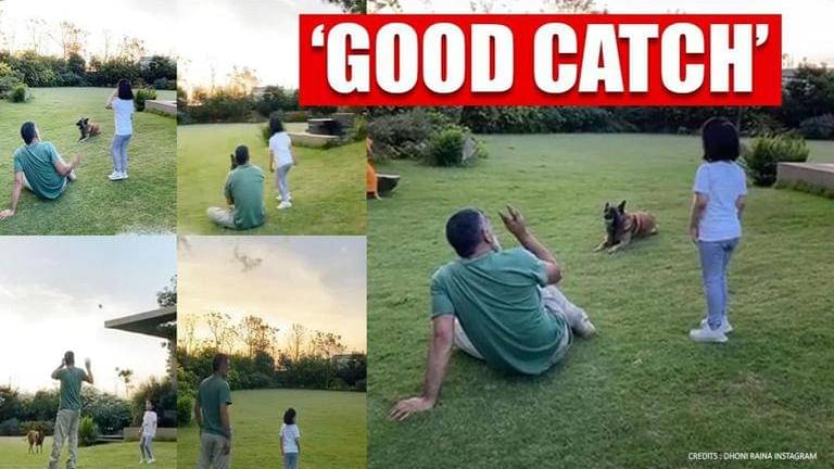 Legendary cricketer Mahendra Singh Dhoni who is currently in Ranchi with his family on Tuesday was seen training his dog with daughter Ziva. MS Dhoni's wife Sakshi went live on her Instagram handle and showed how her husband and Ziva were training their pet dog to play Catch.