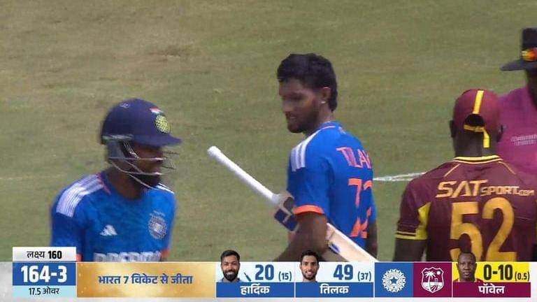 India won the first match of the series by a seven-wicket margin over the West Indies. The West Indies batted first and managed to score 159 runs for the loss of five wickets. In response to this challenge, India demonstrated their brilliance by scoring 164 runs for three wickets in 17.5 overs, clinching the victory. The remarkable performances of Tilak Varma, who scored 49 runs, and Suryakumar Yadav, who contributed 83 runs, were critical in propelling the side to victory.